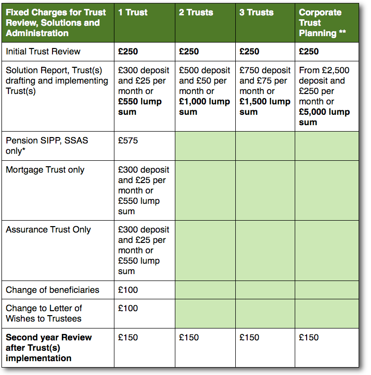 * Pension Trust fees can usually be paid by the Pension Trustees direct from your pension account.